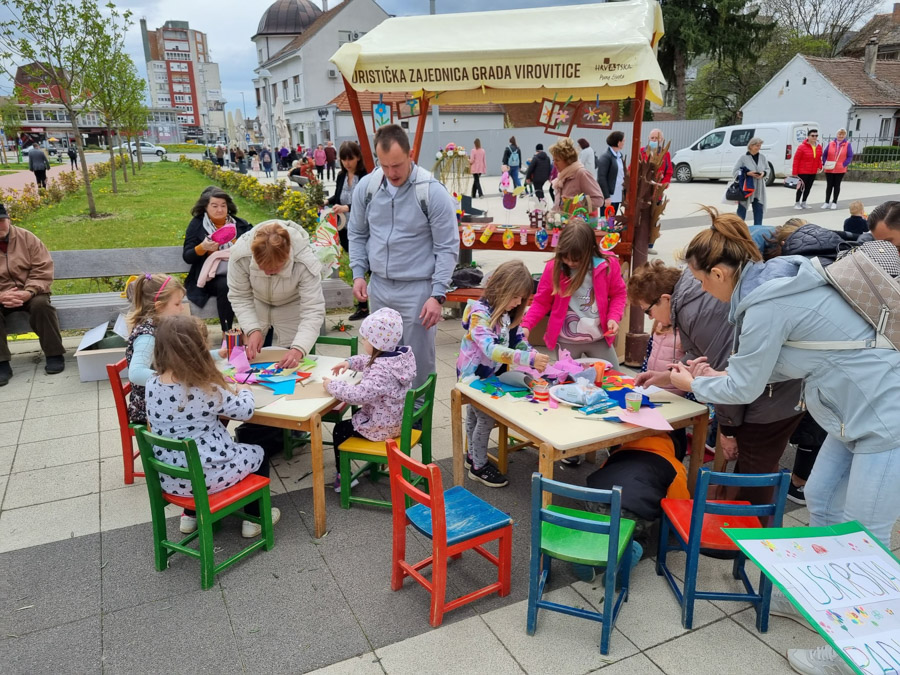 Dok su naši najmlađi sugrađani uzbuđeno sudjelovali u potrazi za stotinama sakrivenih pisanica, oni nešto stariji i sa drugačijim interesima uživali su u šetnji štandovima. Raznorazni i šaroliki nakit i ukrasi, djela ruku lokalnih proizvođača i kreativnih udruga, mamili su poglede i bili odlični okidači za razgovore.