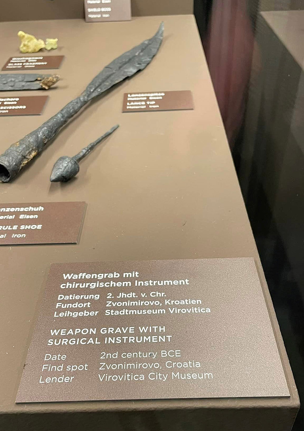 Nalazi Gradskog muzeja Virovitica po svojim karakteristikama, osobito rijetkom nalazu kirurškog instrumenta, pripadali su grobu keltskog druida, a nađeni su na nalazištu Zvonimirovo – Veliko polje. Grobovi druida, pripadnika visokog staleža keltskog naroda, nisu tako česti na nalazištima kasnog željeznog doba zbog čega su virovitički nalazi iznimno cijenjeni.