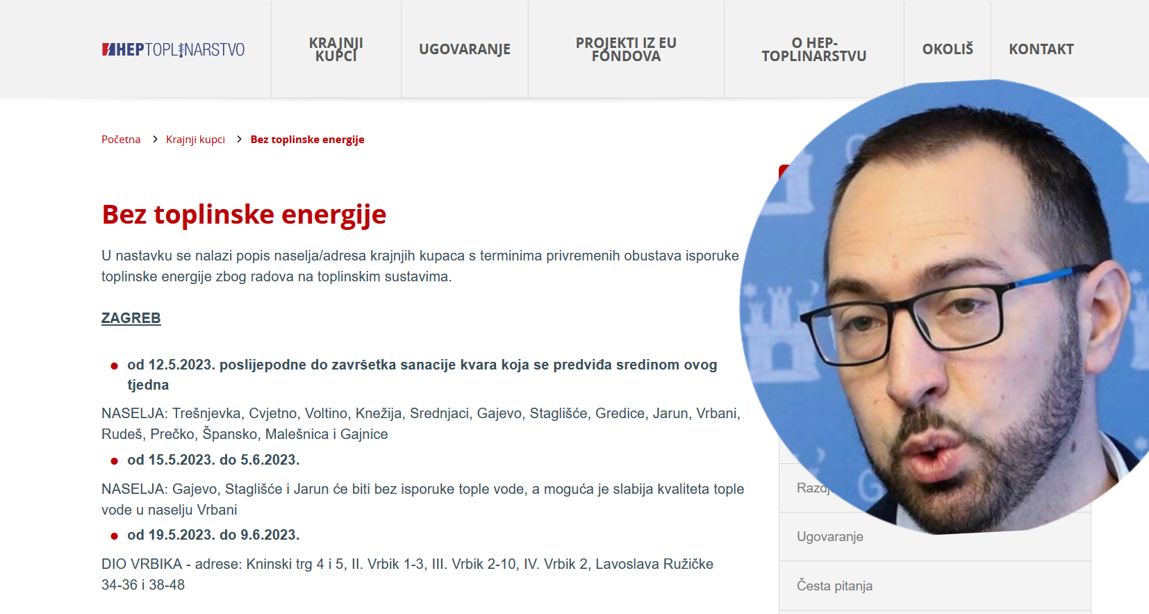" Po mojim informacijama, došlo je do puknuća zbog građevinskih radova koji su u tijeku od strane HEP-a kao investitora, međutim, istraga će to do kraja dokazati. Ovisno o tome će se financirati sanacija same cijevi. Što se tiče građana koji nemaju toplu vodu, to nije nešto što je u gradskoj domeni, gradskih poduzeća. Toplu vodu isporučuje HEP, a mi isporučujemo vodu " - Tomašević se izjasnio za HRT.