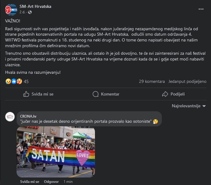 Nakon što su organizatori promijenili datum održavanja ovog sotonističkog festivala, krenuli su i brojni komentari na njihovoj Facebook stranici koje možete pročitati u nastavku.