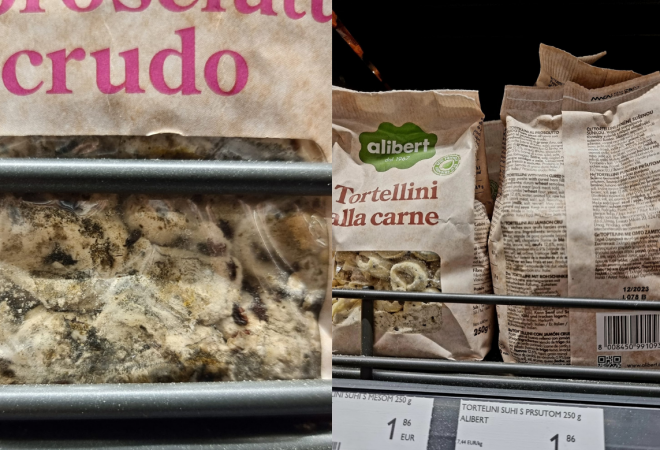 U pakiranju suhih tortelina, uz meso i pršut našli su se crvi. Kako je vidljivo na fotografijama snimljenim u Plodinama, rok trajanja je istekao u prosincu 2023. godine.