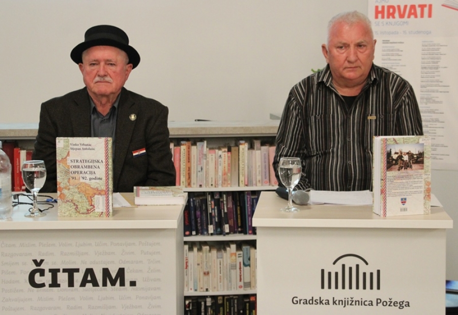 Umirovljeni general Hrvatske vojske Vinko Vrbanac te umirovljeni brigadir Stjepan Antolašić, u Gradskoj knjižnici Požega predstavili su knjigu „Strategijska obrambena operacija 91./92. godine“.