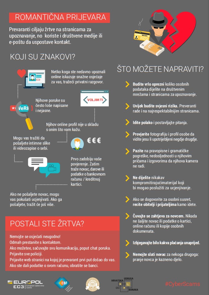 Počinitelji tzv. romantičnih prijevara kroz komunikaciju iskazuju snažne osjećaje prema žrtvi, a nakon što zadobiju njeno povjerenje traže novac, darove ili podatke o bankovnim karticama.