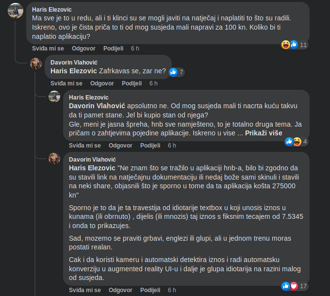 U jednoj grupi na Facebooku se razvila čitava rasprava o tome da li je trošak izrade aplikacije opravdan ili nije. Pogledajte neke od komentara: