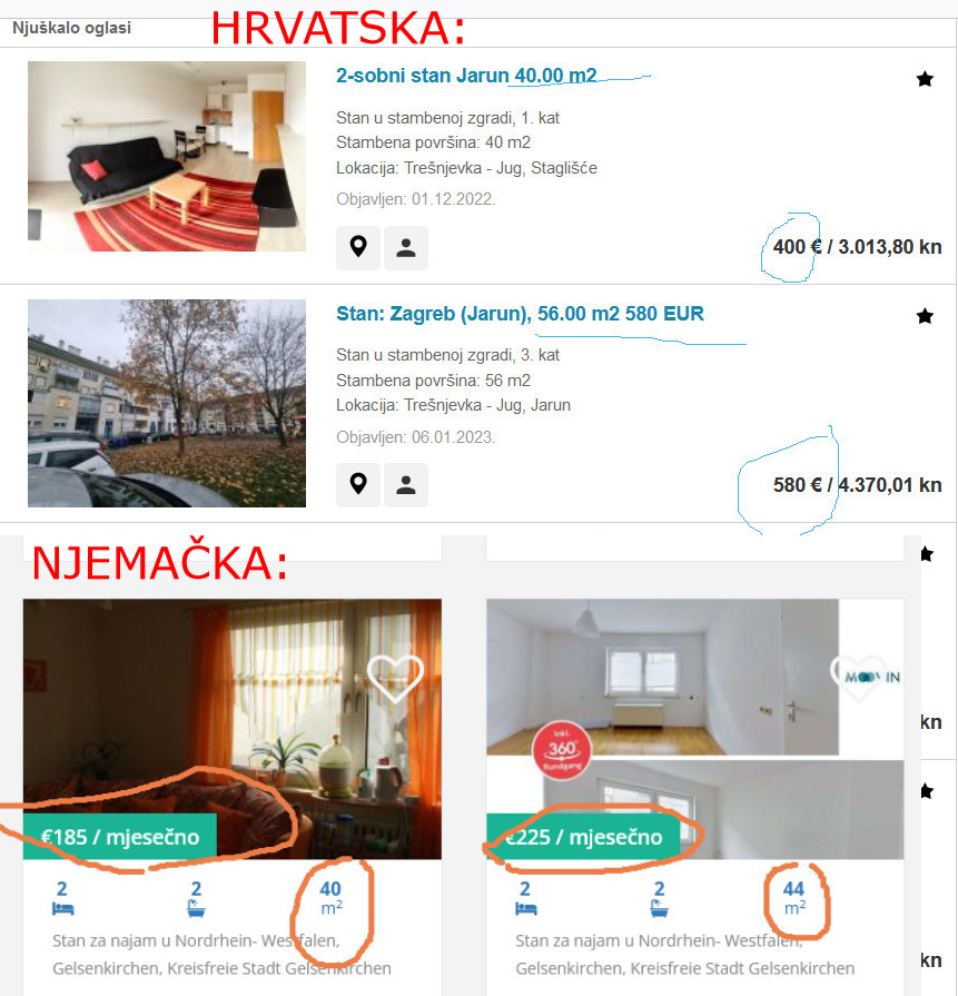 Usporedili smo najmove stanova u RH i Njemačkoj, zajedno s cijenama u jednih od dućana. Napominjemo, ovdje govorimo o Njemačkoj, zemlji visokog životnog standarda, poštenih plaća i dobrih prihoda koji se ne mogu mjeriti s našima. Kako naši političari kažu- ' Ne možemo se mjeriti s Njemcima.' Kako onda, ispada da je Hrvatska trenutno u određenim segmentima skuplja od iste te Njemačke?