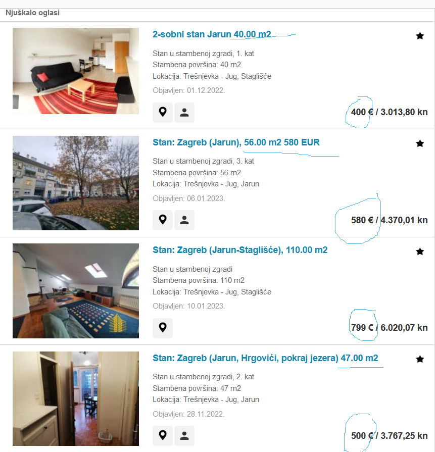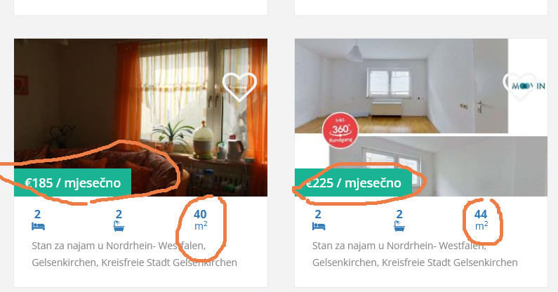 Najam nekretnina ( oboje ne u centru) u Hrvatskoj i Njemačkoj: