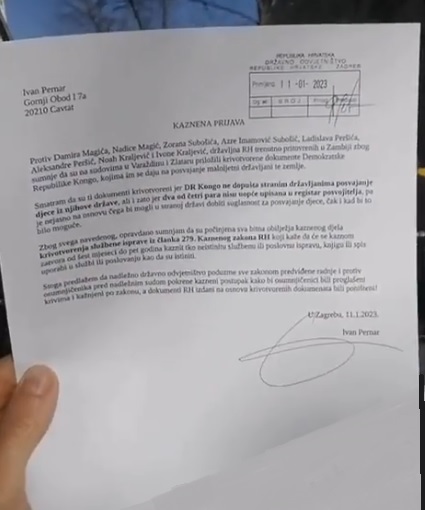 Pernar ih je prijavio za to što su sudovima u Varaždinu i Zlataru priložili krivotvorene dokumente DR Kongo kojima im se daju na posvajanje maloljetni državljani te zemlje.