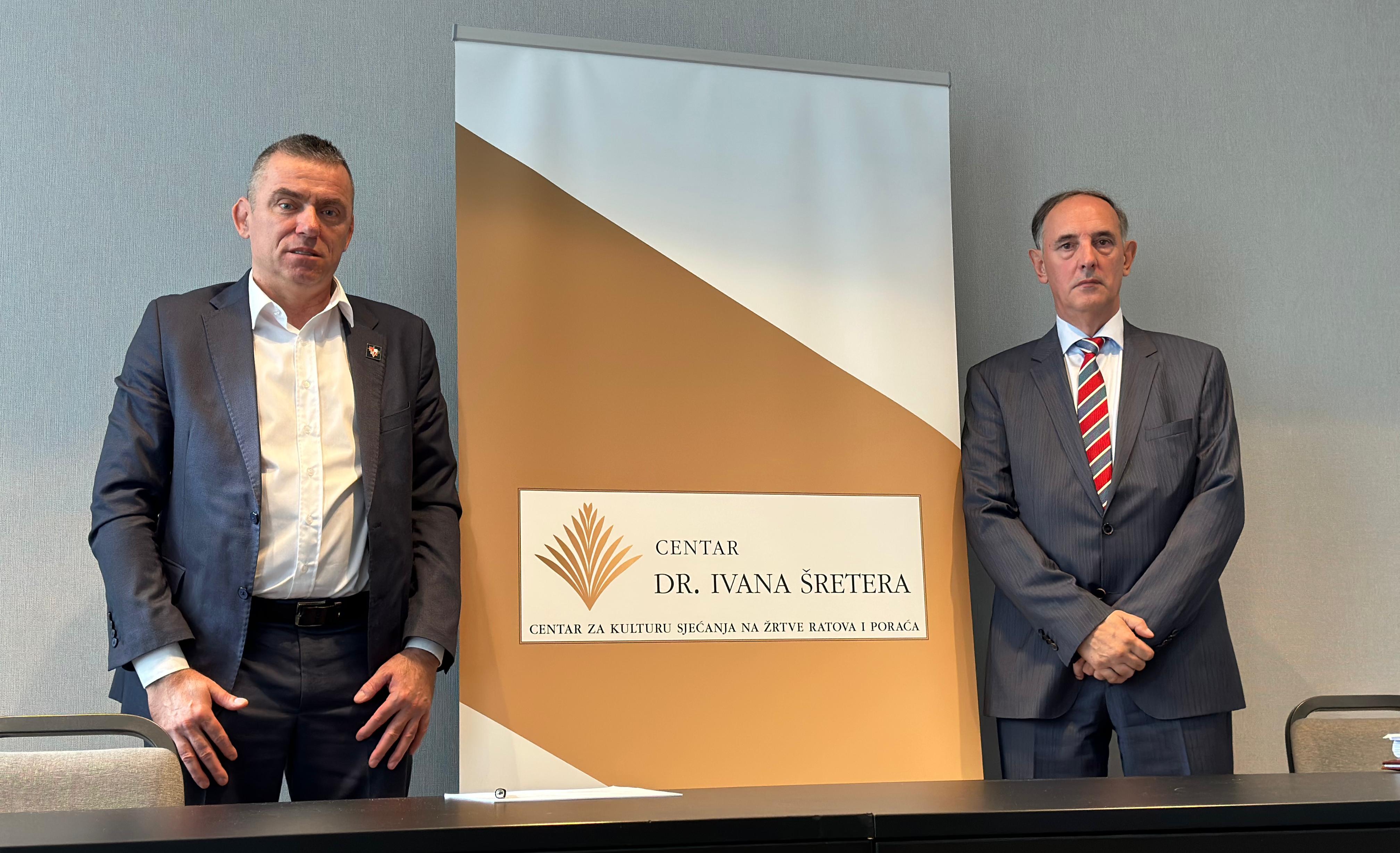 Stipo Mlinarić, saborski zastupnik i predsjednik Centra dr. Ivana Šretera, i Berislav Živković, odvjetnik i pravni zastupnik Centra dr. Ivana Šretera, održali su konferenciju za medije na temu predaje nove kaznene prijave Centra dr. Ivana Šretera DORH-u.