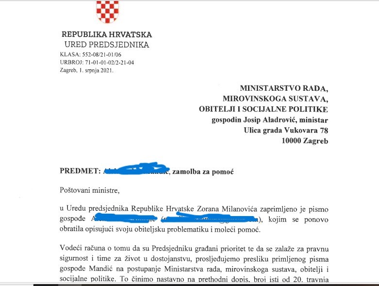 Tamara Degostin Mušković je neumoljiva. Ne postupa po predmetu, a drugi postupak da se urede viđanja između dvije sestre je odbacila. Nije pomogao niti dopis iz Ureda Predsjednika Republike Ministarstvu rada, mirovinskog sustava, obitelji i socijalne politike.