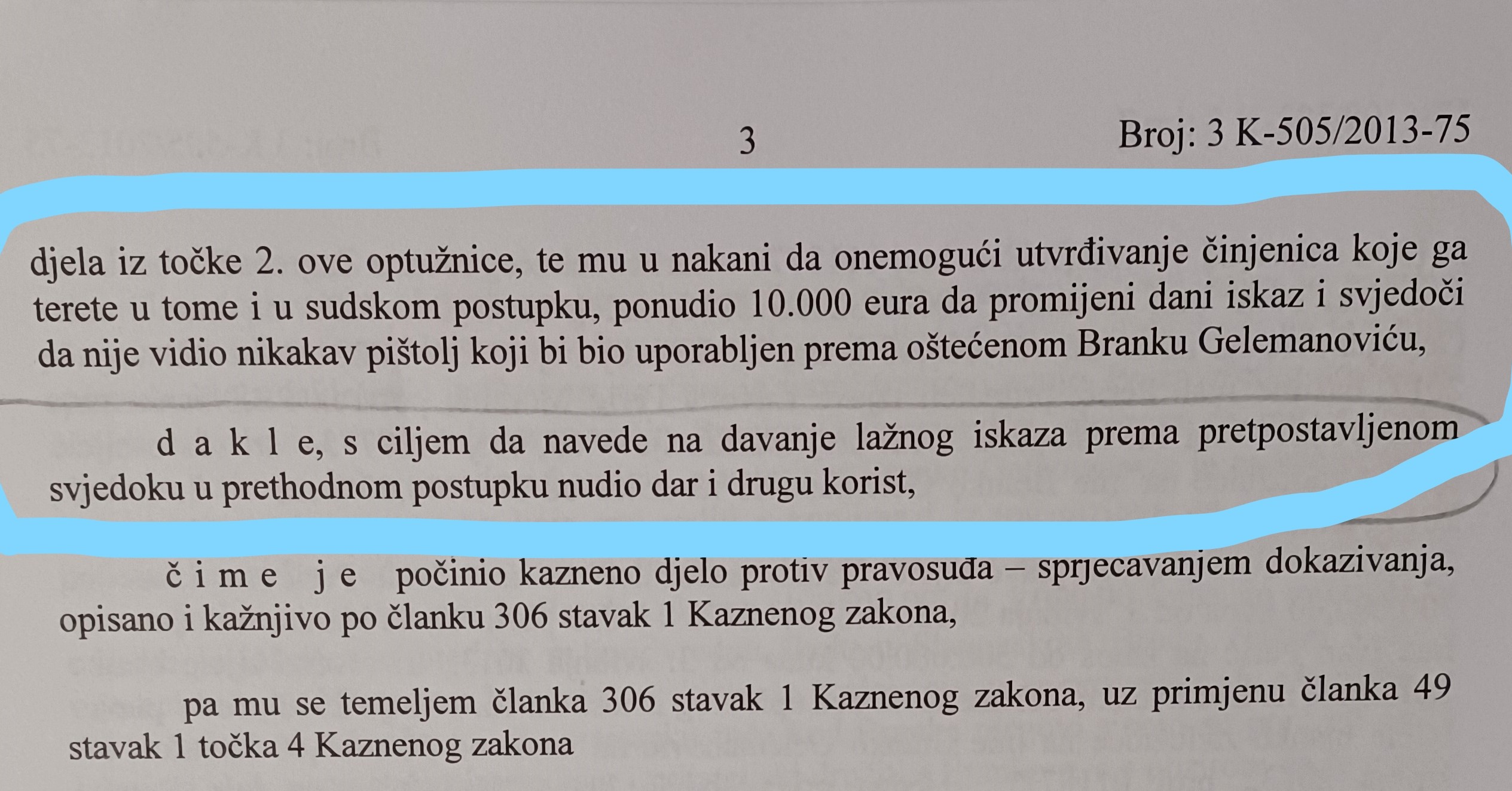 Za svjedoka koji bi trebao posvjedočiti kako je Svirčeviću dao novac Ivan Perić navodi Branka Gelemanovića, veterinara iz sela Davor.
