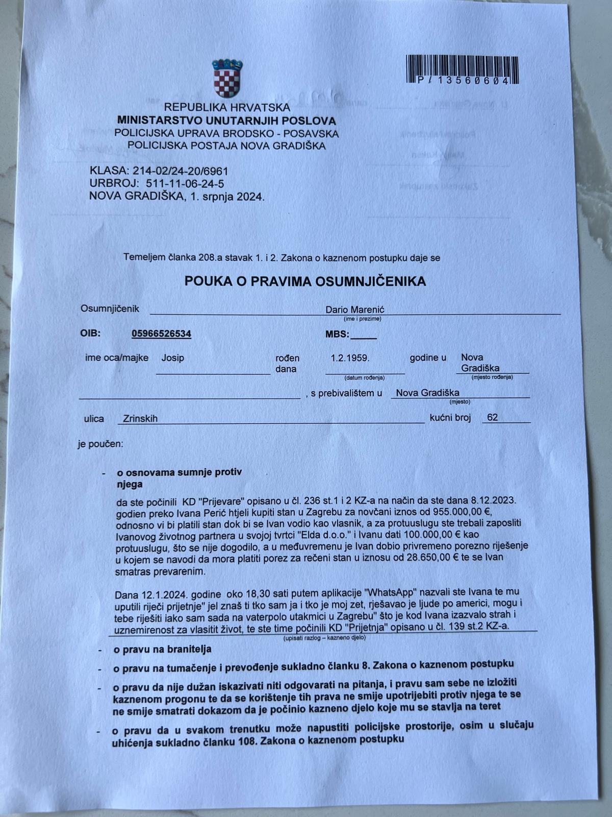 I, onda ide već viđeni 'modus operandi', Perić diže kaznenu prijavu protiv Marenića tvrdeći da je ovaj njega prevario. I, dakako, policija promptno kuca na Marenićeva vrata, jer DORH „samo radi svoj posao“.