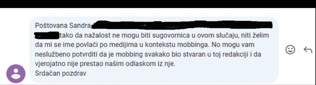 Odgovor koji smo primili potvrdio je informacije koje su nam dali naši izvori. „Osim tri pritužbe Bojane Guberac, Povjerenstvu za zaštitu dostojanstva radnika pritužbe su podnijela četiri prijavitelja. Dvije se pritužbe odnose na komunikaciju kolega, a tri na odnose s urednicima. Posljednja pritužba podnijeta je u siječnju 2024. Povjerenstvo za zaštitu dostojanstva radnika odbacilo je jednu pritužbu zbog nenadležnosti. Ostale pritužbe Povjerenstvo je riješilo na zakonom utvrđeni način i u roku. Povjerenstvo nije utvrdilo postojanje mobinga ni u jednom predmetu, a u nekima je utvrdilo nepravilnosti u komunikaciji i radnim procesima, pa su prijavljenicima i nakladniku dane odgovarajuće preporuke. Po primitku zaključaka Povjerenstva za zaštitu dostojanstva radnika prijavitelji se nisu obraćali nakladniku s dodatnim pritužbama ili prigovorima na rad Povjerenstva“, stoji u odgovoru SNV-a.