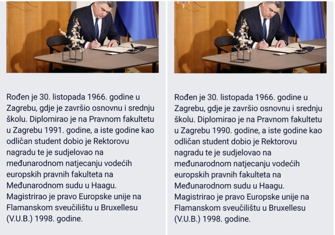Izmjena možda djeluje sitna, ali upravo ta jedna godina otvara niz pitanja. Je li natjecanje u Haagu održano 1990. ili 1991. godine? I kako se dogodilo da Zoran Milanović, koji se voli ponositi svojom briljantnom akademskom karijerom, tek sada priznaje ovu "sitnu" vremensku nepodudarnost?