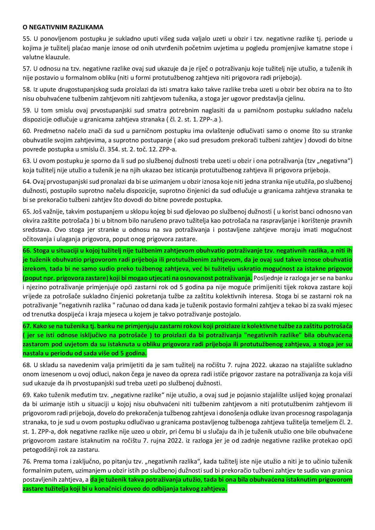 2. Negativne razlike anuiteta koje su bile niže od početno ugovorenih, banke nemaju pravo prebijati s preplaćenim anuitetima jer su ti iznosi za banke u zastari.