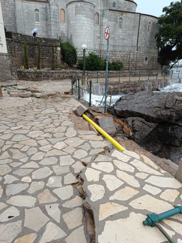 Olujno nevrijeme noćas je odronilo dio obalne šetnice u Opatiji.
