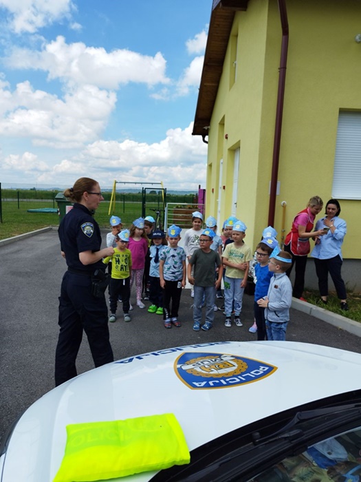 Kroz druženje s policijskim službenicima mališani su saznali puno korisnih informacija o policijskim poslovima, prometnim pravilima, kretanju pješaka u prometu, korištenju auto sjedalice i sigurnosnog pojasa, kao i kacige kada voze bicikle.Djeca su se čak i „okušala“ u liku policajca/policajke, obučeni u reflektirajući policijski prsluk i sa STOP palicom simulirali su kako to policijski službenici pomažu djeci u prometu, a posebice kod prelaska obilježenog pješačkog prijelaza. Ovim prekrasnim druženjem djece i policijskih službenika ostvaren je kontakt, kojim je pojačano povjerenje djece u policajce kojima se uvijek mogu obratiti za pomoć. Navedenom edukativno-preventivnom aktivnošću djeca su se kroz igru mogla upoznati sa djelićem poslova koje obavljaju prometni policajci, no svakako treba napomenuti da su djeca pokazala kako već raspolažu određenim znanjem i osnovama sigurnog sudjelovanja u prometu. Nakon edukacije djeci je bilo omogućeno da pogledaju službeno policijsko vozilo, te su sa policajcima razgovarali,postavljajući im zanimljiva pitanja. Na posljetku, mališane je ipak najviše razveselilo razgledavanje službenog motocikla i policijske opreme.