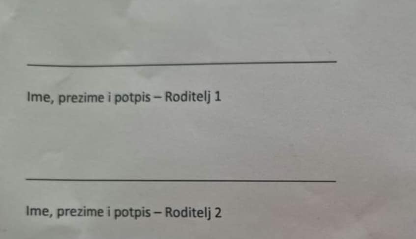 U službenoj Izjavi koju roditelji moraju potpisati kako bi ostvarili ovo pravo nema kategorija "majka" i "otac", već su umjesto toga stavljene sintagme "Roditelj 1" i "Roditelj 2".