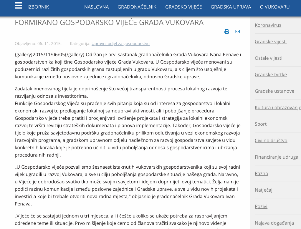 Prošlo je skoro sedam godina od kada je u studenom 2015. održan prvi sastanak gradonačelnika Grada Vukovara Ivana Penave i Gospodarskog vijeće Grada Vukovara, sastavljenog od šesnaest poduzetničkih imena iz različitih gospodarskih grana zastupljenih u Vukovaru, koji su, kako je naglašeno, svoj radni vijek ugradili u razvoj Vukovara, a u cilju što uspješnije komunikacije između poslovne zajednice i gradonačelnika.