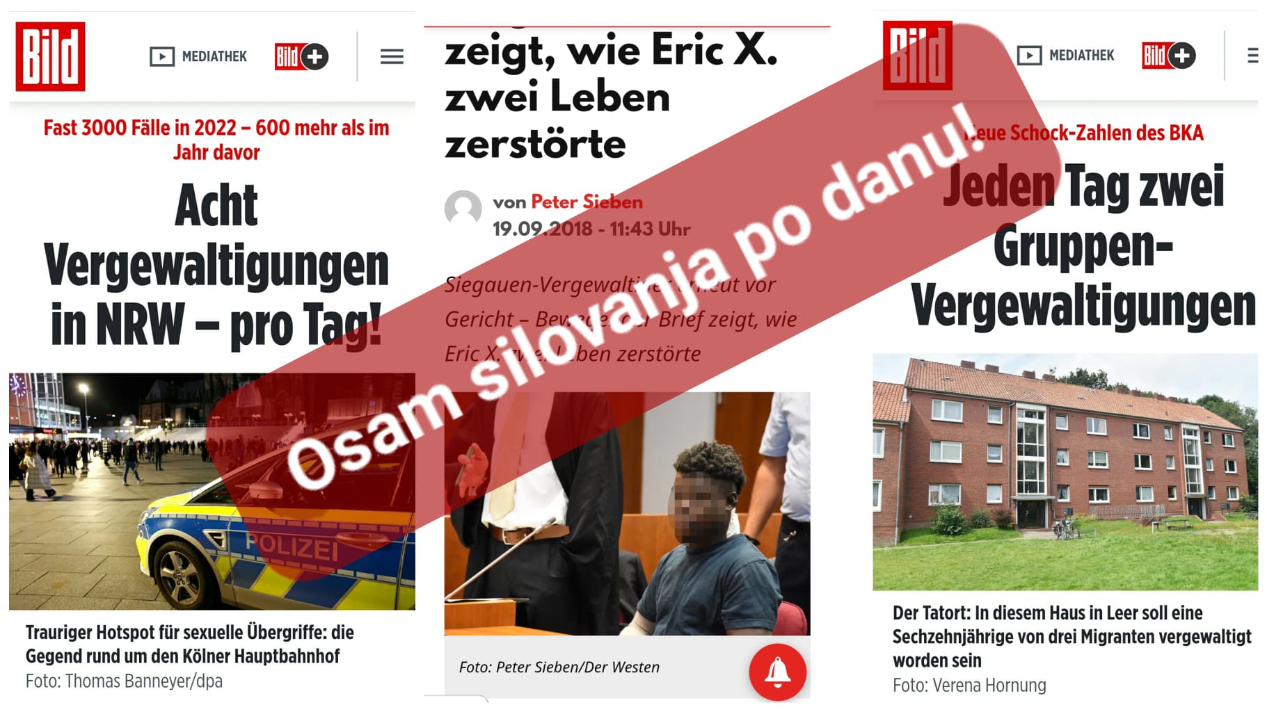 Nedavno objavljeni podaci za Sjevernu Rajnu-Vestfaliju u listu "Bild" bili su šokantni: u divljem pustinjskom kalifatu na Rajni i Ruhru zabilježeno je ürošle godine 246 grupnih silovanja, što je porast od 43 posto u odnosu na prethodnu godinu. To znači da se grupno silovanje događa svaki dan i pol - samo u Sjevernoj Rajni-Vestfaliji! A to su samo grupna silovanja - "obična" silovanja su dodatak ovim brojkama! Ukupno je prijavljeno 2949 silovanja u 2022. godini, što je povećanje od 26 posto u odnosu na prethodnu godinu. U Sjevernoj Rajni-Vestfaliji, u prosjeku je svaki dan silovano osam žena. To znači da se svaka tri dana dogodi 24 silovanja, uključujući i dva grupna silovanja.