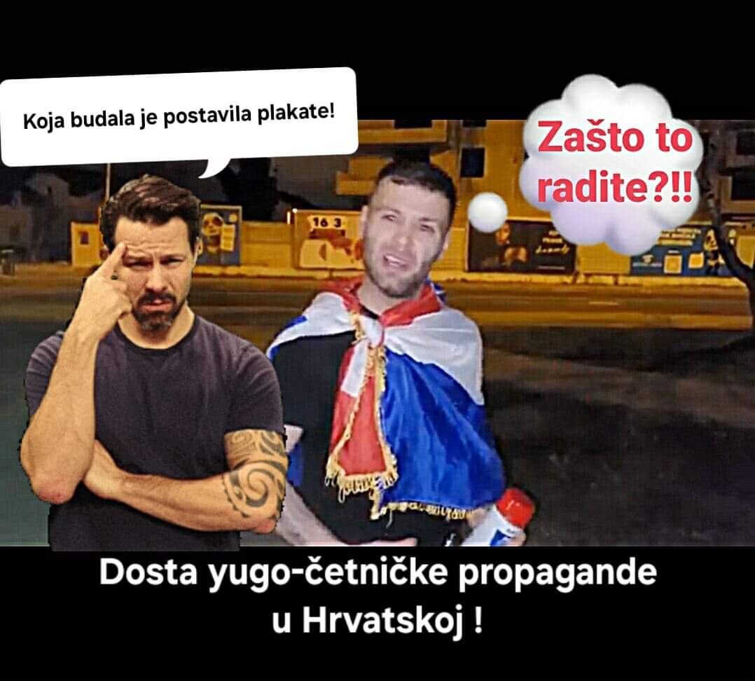 "Neko je ginuo za ovu državu, neko se borio za ovu državu da bih ja mogao živjeti, netko mora odgovarati za plakate koji vrijeđaju sve one koji su dali život za Hrvatsku, ali i one za koje se ne zna gdje su im grobovi. Tko je dopustio ovo, za ovo se treba dobiti izgon iz Hrvatske. Ovim udarate ponovno u srce Hrvatske i stvarate novu patnju. Svi u Hrvatskoj imaju neka prava osim Hrvata. Svi u Hrvatskoj mogu pjevati osim Thompsona. Izdali smo im Generale, a oni nas gaze dalje. Neko je izgubio obiteljsku lozu u borbi za slobodu Hrvatske kako bih ja mogao živjeti, dosta je, neću ovo više dozvoliti."