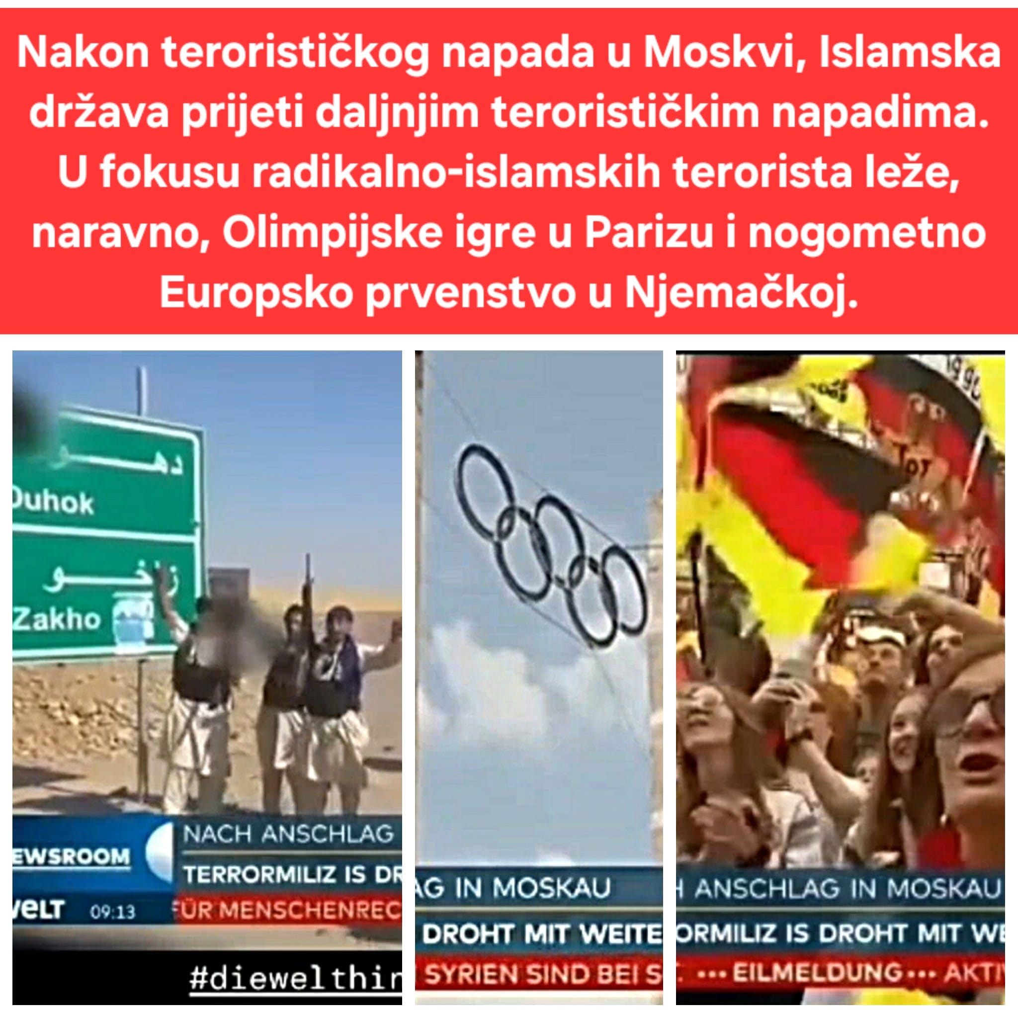 Nakon terorističkog napada u Moskvi, Islamska država prijeti daljnjim terorističkim napadima na način da aktivira pojedine spavaće ćelije. U fokusu radikalno-islamskih terorista leže, naravno, Olimpijske igre u Parizu i nogometno Europsko prvenstvo u Njemačkoj. Rusija je u… pic.twitter.com/kwkApZUURS