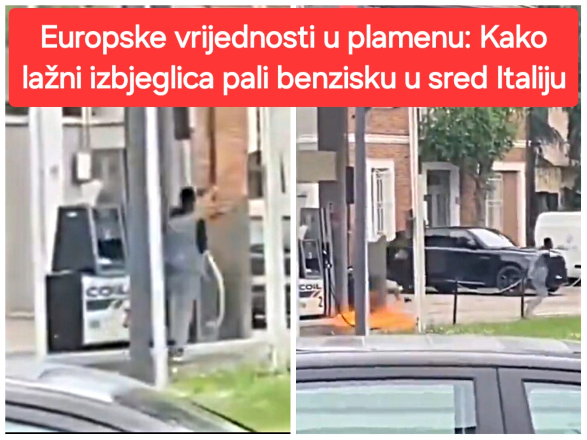 "Europske vrijednosti u plamenu: Gledaj te kako lažni izbjeglica pali benzinsku u sred Italije".