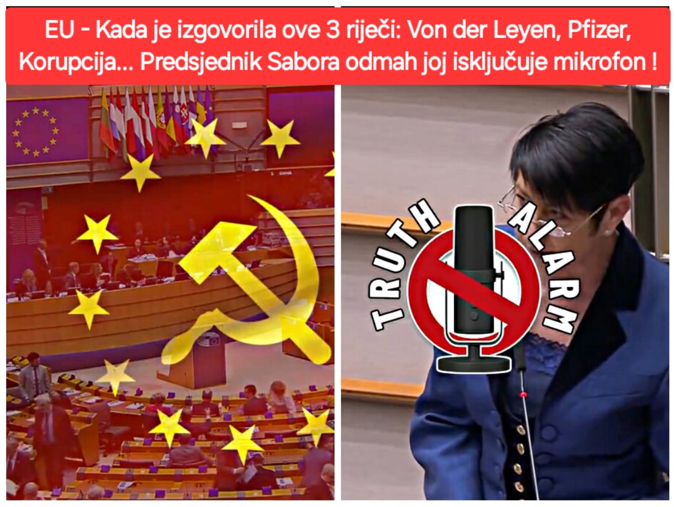 "Galama u EU parlamentu. Kada je izgovorila ove 3 riječi: Von der Leyen, Pfizer, Korupcija... Predsjednik Sabora odmah joj isključuje mikrofon‼️"