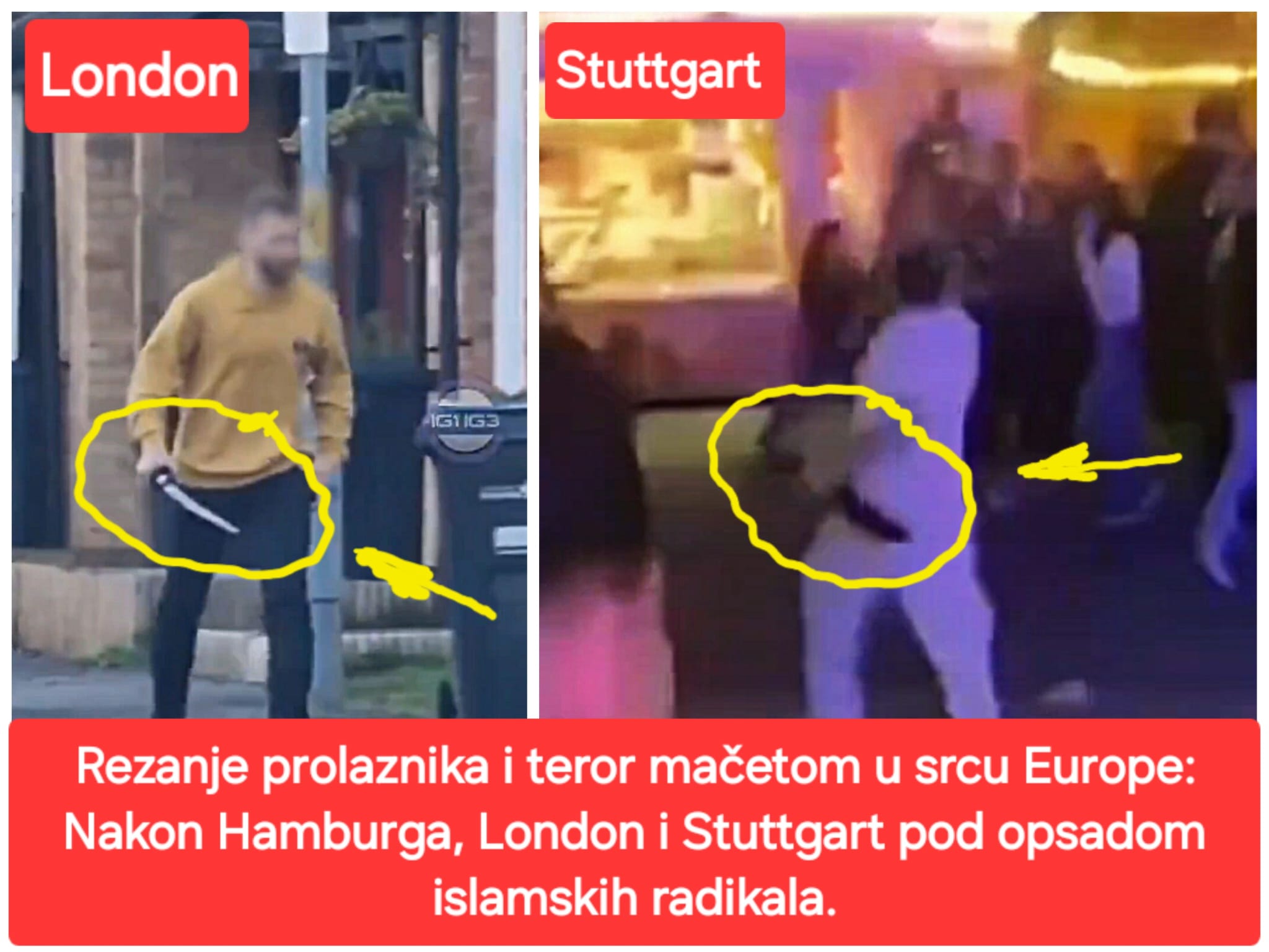 "Rezanje prolaznika i teror mačetom u srcu Europe: Nakon Hamburga, London i Stuttgart pod opsadom islamskih radikala."⚠️