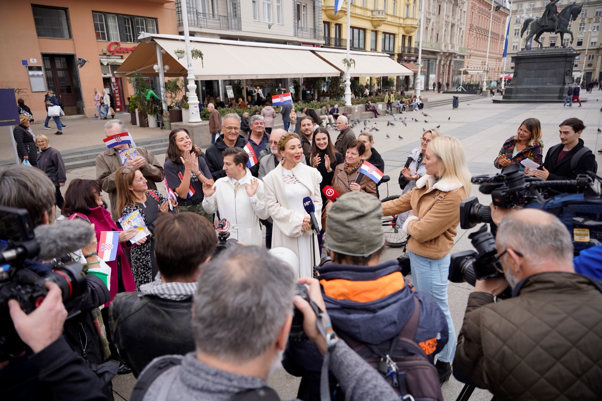 Kažu za umjetnike da su korak ispred svog vremena. Taj korak u budućnosti učinila je i Vlayna, dramska persona glumice Ecije Ojdanić, kada je danas u 13:30 sati na zagrebačkom Trgu bana Josipa Jelačića prikupljala potpise za kandidaturu za predsjednicu Republike Hrvatske na izborima 2025. godine.