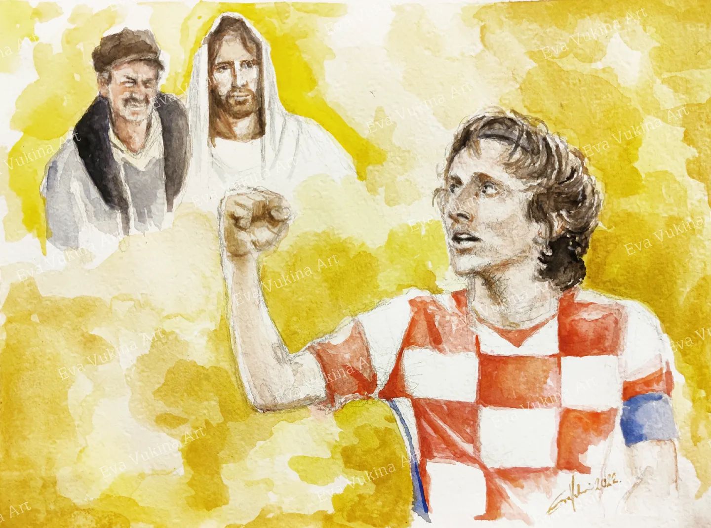 Dragi @ivan_dominik_ilicic je imao priliku susresti se s @lukamodric10 prije odlaska u Katar, pa me zamolio da napravim za njega sliku kao dar i ohrabrenje i tako smo zajedno osmislili ovu sliku. Bogu na hvalu i slavu.