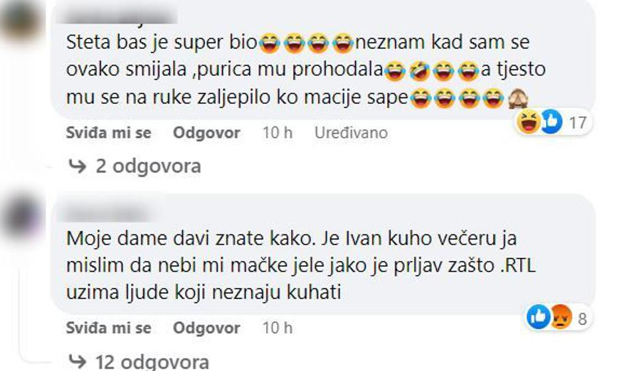 Ivanovo kuhanje izazvalo je mučne reakcije, na trenutke se činilo da neće uspjeti završiti jela, ali na kraju je za svoje goste pripremio predjelo naziva predjelo Muževa mazalica, glavno jelo Jedna pura, dva pandura i desert Zvjezdano nebo. Pašteta od guščje jetre čak je dobila i pohvale, purica je svima bila suha i prepečena, mlinci ljuti, a desert nije baš najbolje ispao tako da je Ivan skupio samo 21 bod i sada je na zadnjem mjestu. I gledatelji su se složili da večera nije bila najbolja.