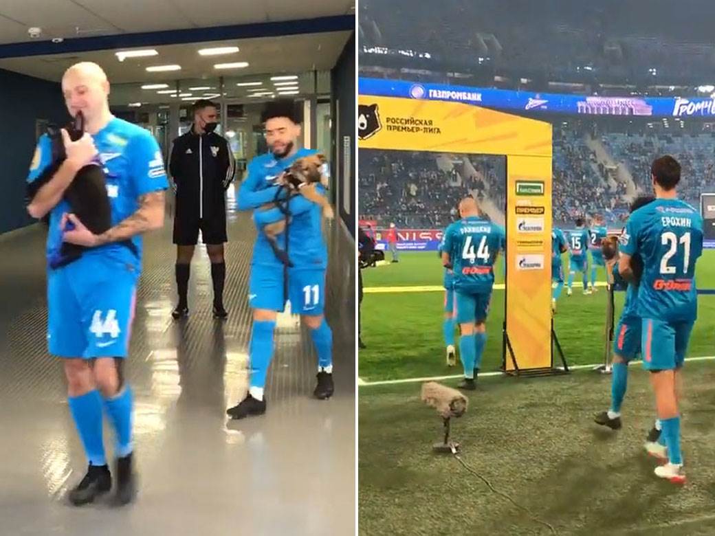 Divna slika iz Rusije, snimljena uoči utakmice Zenit - Rostov. Domaći nogometaši su podržali sjajnu akciju i izašli na početak utakmice noseći pse u naručju.