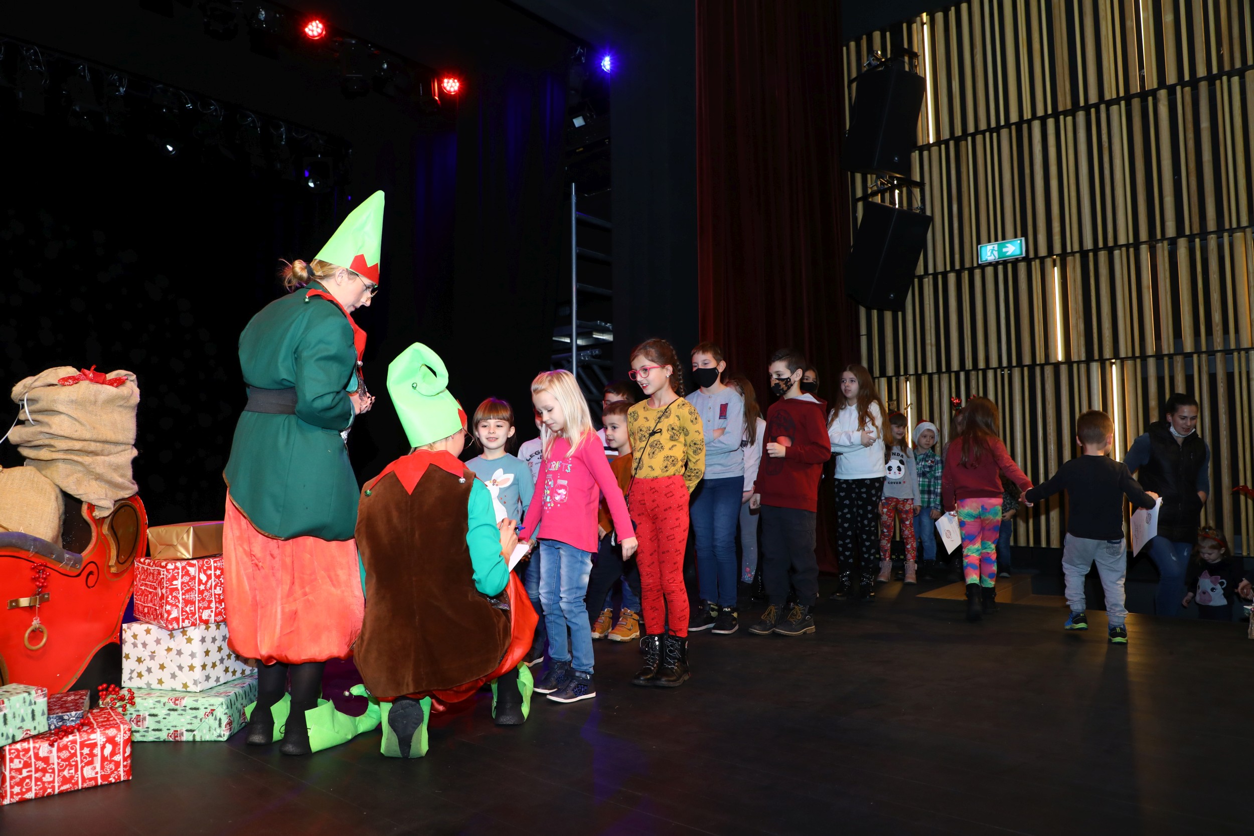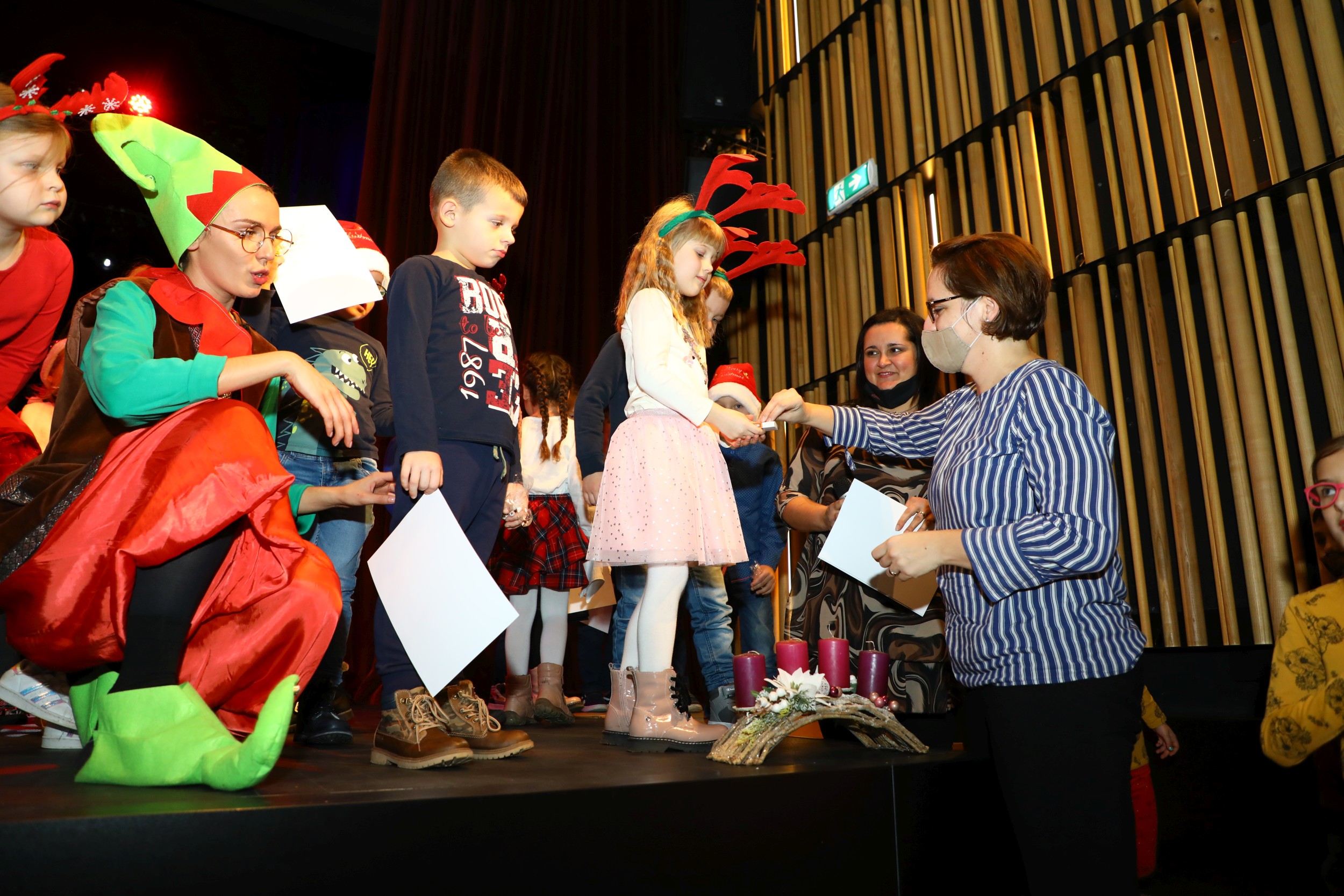 Nakon predstave djeca su vilenjacima izvela pjesmu 4 adventske svijeće, a onda zajedno sa gradonačelnicom, Marijom Šarić zapalili prvu adventsku svijeću.