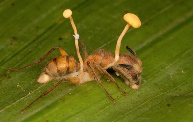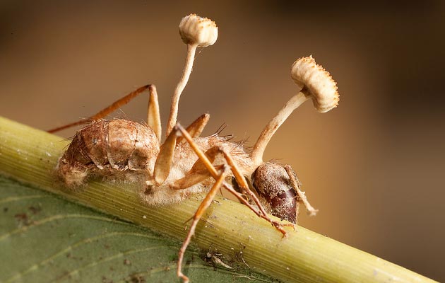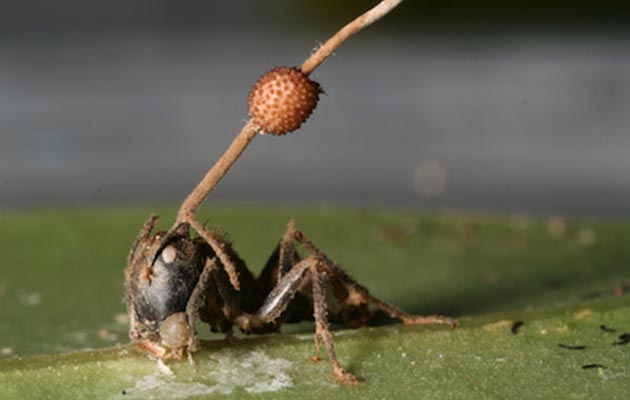 Dovoljno je da nesretni mrav prođe pored ove gljive čije spore odmah pronađu put do svog novog domaćina, a nakon dvije sedmice rasta u njemu, ona postaje spremna da preuzme njegov nervni sistem i mozak. Tada stvari postaju krajnje bizarne. Mrav se počne čudno ponašati, a ostali mravi ga odmah odstrane, jer bi u suprotnom gljiva mogla zaraziti milione pripadnika kolonije.