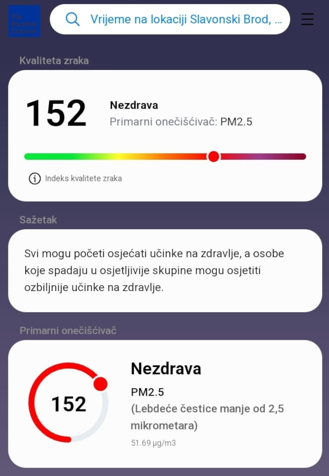 Problem je to s kojim se Brođani muče već 15 godina. Od jučer se mjere koncentracije od 132 mikrograma po kubnom metru. Riječ je o izrazito visokim koncentracijama koje, dokazano, mogu imati i značajan utjecaj na zdravlje. Stručnjaci čak 3000 smrti godišnje povezuju sa zagađenjem zraka. Glavni je to, tvrde, uzrok prerane smrti i bolesti te najveći ekološki rizik u Europi.