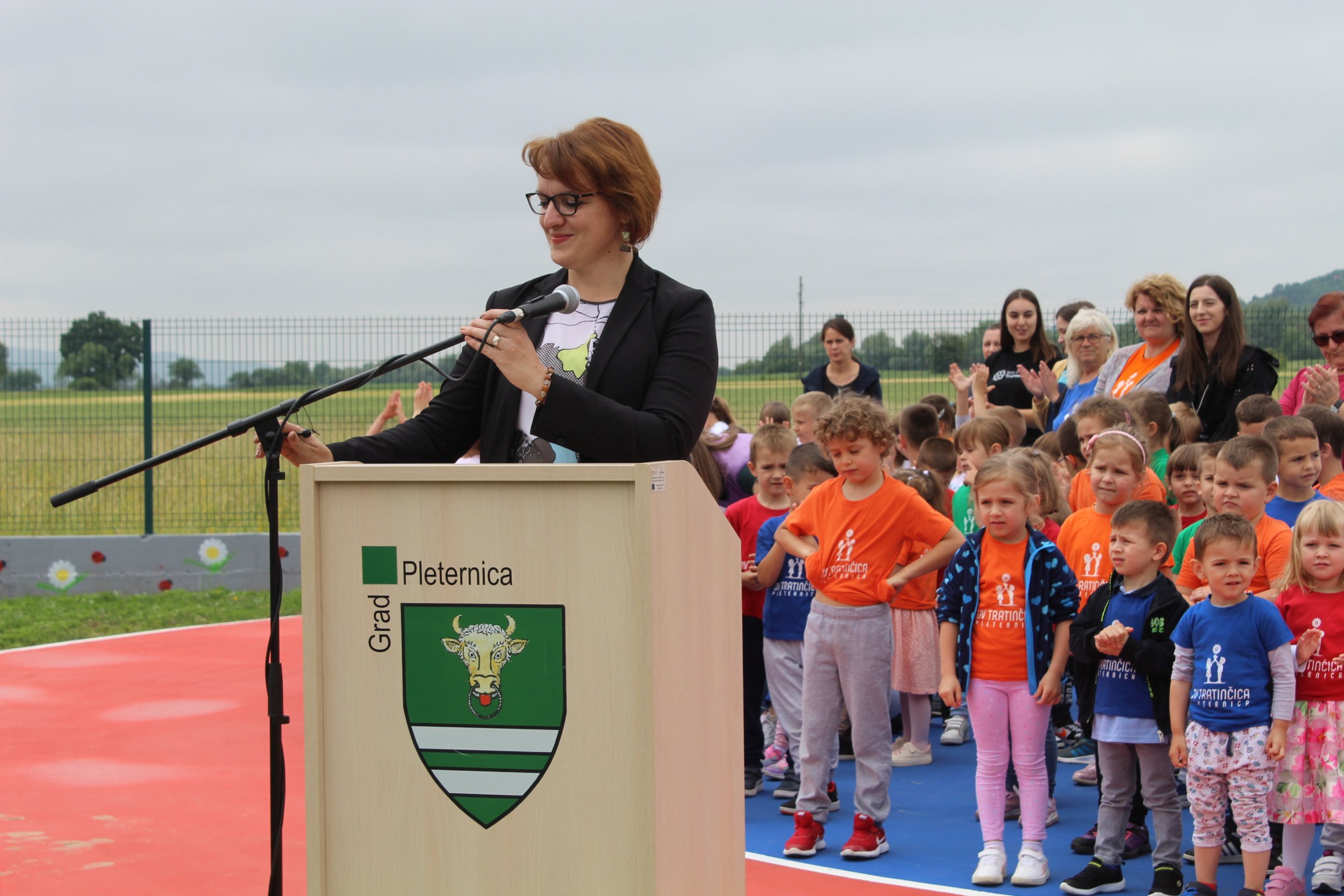 „Ulaganje u djecu najveći je ulog u našu budućnost. Djeca nam doista mogu najviše donijeti te se zato kao Vlada trudimo uložiti u ono što nam je najvažnije, a to je upravo predškolski odgoj i obrazovanje. Drago mi je da je ovaj dječji vrtić dobio svoju novu aktivnost, svoje igralište, i sigurna sam da će sva djeca iz grada Pleternice koja su upisana i koja će se upisivati biti jako zadovoljna i sretna sa svim aktivnostima koje vrtić nudi. Mi ćemo i dalje nastojati podržavati općine i gradove, a u Požeško-slavonskoj županiji financirali smo sedam lokalnih samouprava kako bi se i dalje održao i razvijao predškolski odgoj i obrazovanje. Uložili smo u pet vrtića u ovoj županiji, a jedan od njih je i ovaj u Gradu Pleternici.“ – rekla je državna tajnica Josić.