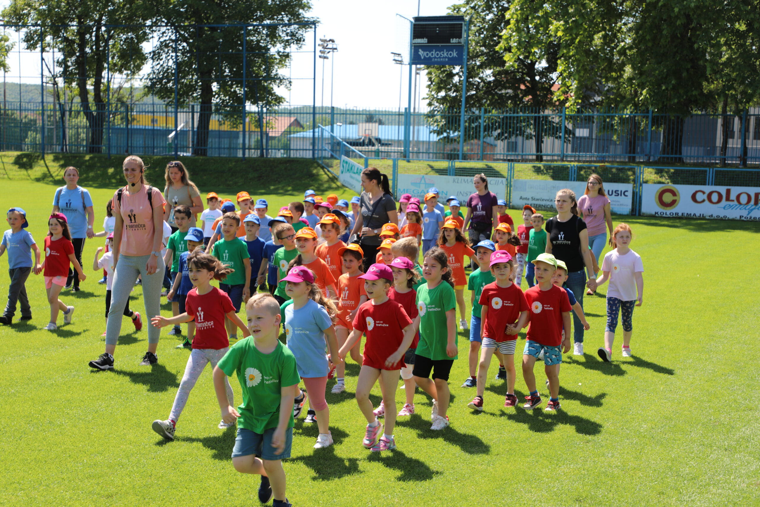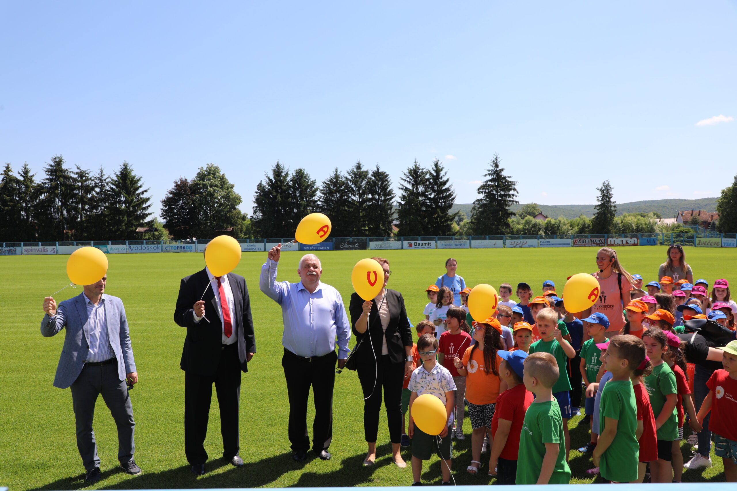Sanirani teren otvoren je simboličnim puštanjem balona, a vježbom i razgibavanjem na terenu događaj su uljepšali mališani Dječjeg vrtića Tratinčica i mladi nogometaši Slavije.
