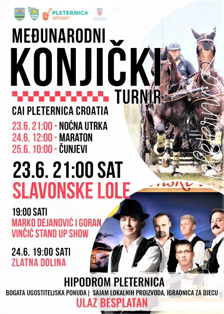 Govoreći o ostalim sadržajima turnira, gradonačelnica Marija Šarić je napomenula da su kao i na svakoj manifestacije okupili udruge, ustanove i tvrtke koje će ponuditi dodatne sadržaje na hipodromu.-U petak nas već očekuje "Knjignik" koji će odraditi naša Knjižnica i čitaonica, prvi dio za djecu, a drugi za odrasle, sa zabavnim programom koji ćemo pružiti našim sugrađanima i gostima. Osim toga, iste večeri bit će održan koncert „Slavonskih lola“ i noćna konjička utrka koja je jedna od najatraktivnijih za posjetitelje, pa sve pozivamo da nam se u petak pridruže. U subotu i nedjelju slijedi sportski dio programa, a pripremili smo i igraonicu za najmlađe, ponudu naše suvenirnice i lokalnih udruga te lokalni sajam. Svi ćemo se opet okupiti na ovom prostoru kako bismo pružili što bolju ponudu našim posjetiteljima da se ugodno osjećaju, podruže i lijepo zabave u Pleternici-poručila je gradonačelnica.