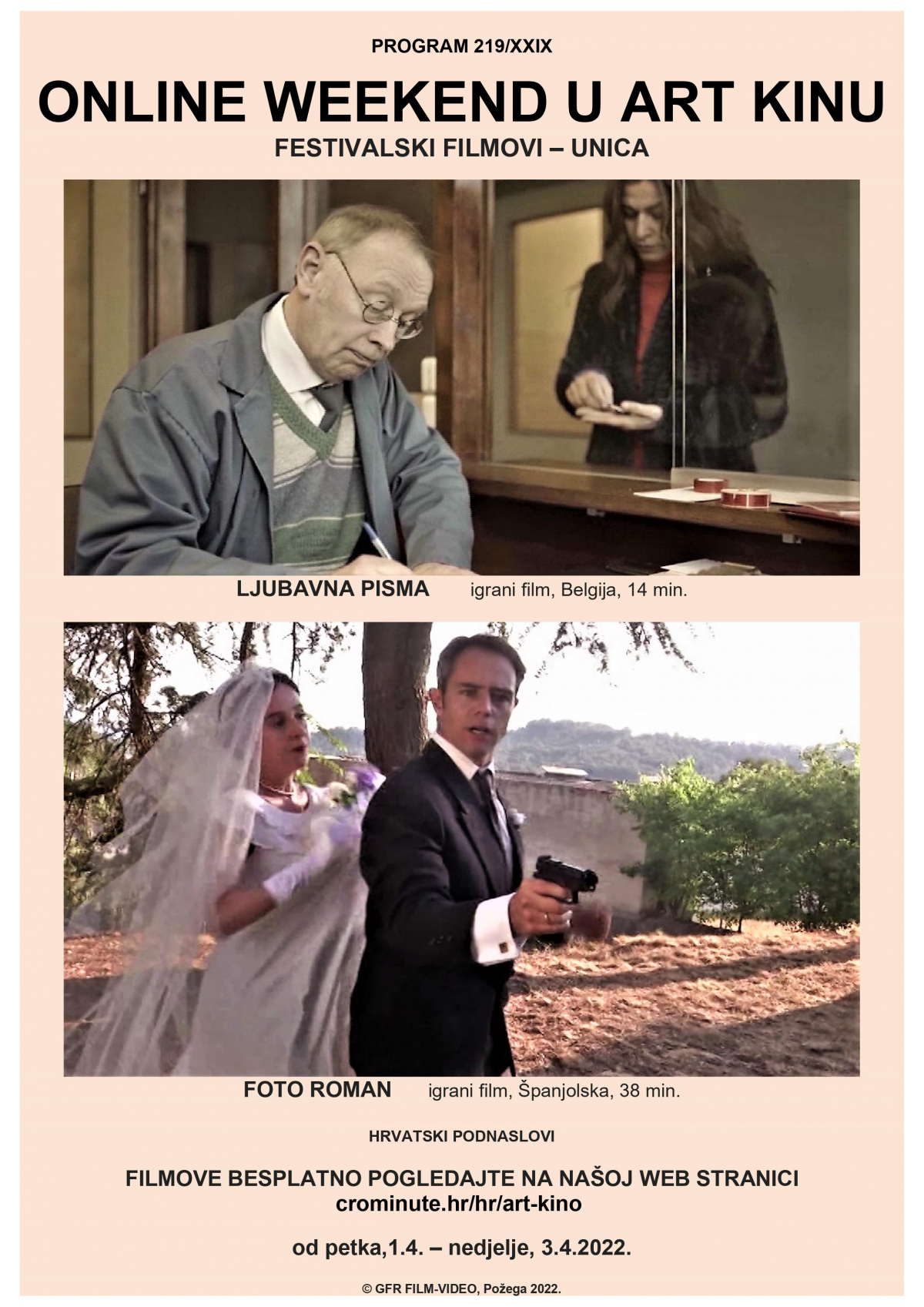 Art kino u Požegi najavilo je novu filmsku projekciju. Od 1. do 3. travnja bit će prikazana dva filma – belgijski igrani film „Ljubavna pisma“ (14 minuta) te španjolski film pod nazivom „Foto Roman“ (38 minuta).