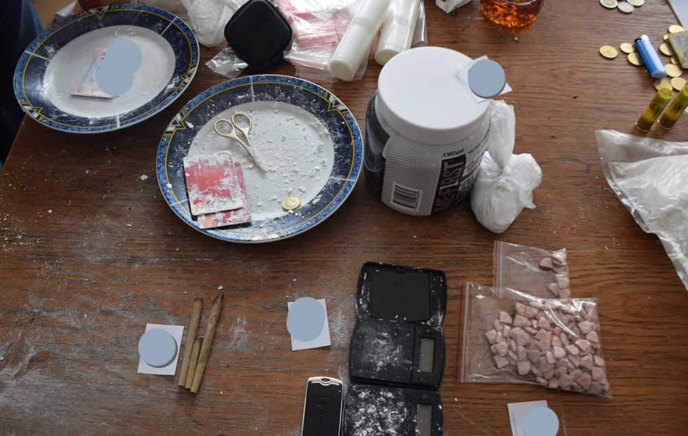 Nadalje, jučer, 17. ožujka temeljem naloga suca istrage Županijskog suda u Slavonskom Brodu izvršena je pretraga stana na području Slavonskog Broda kojeg koristi osumnjičeni 26-godišnjak. Tijekom pretrage pronađeno je 684,64 grama droge marihuana, 572,43 grama droge amfetamin, 163 tablete droge MDMA, 9 grama droge kokain, 277,05 grama bijele praškaste tvari nepoznatog kemijskog sastava, tri digitalne vage s tragovima droge i jedan mobitel s pripadajućom SIM karticom i 3 lovačke patrone cal. 20.