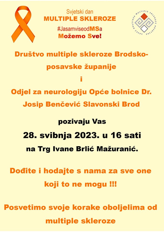 Svjetski dan multiple skleroze i ove se godine obilježava 30. svibnja mnogobrojnim akcijama diljem svijeta, a tako je i u Slavonskom Brodu.
