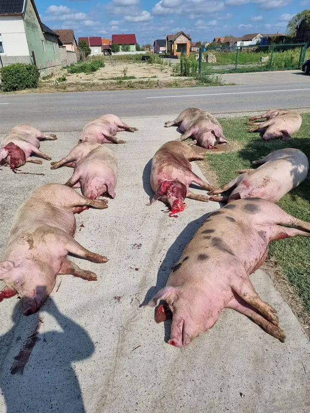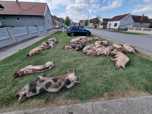 “Ne znam šta bih rekao, čekamo ovdje sa svinjama na travi da ih netko pokupi i odveze”, dodaje za 24sata. Pred njegovom kućom prolaznike dočekuje mučan prizor, a fotografije su se pojavile u jednoj Facebook grupi.