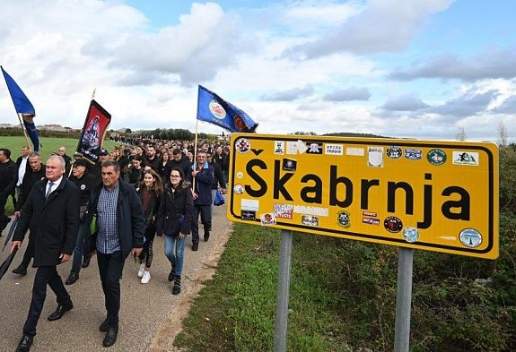 Okupljanje sudionika komemoracije na zapadnom ulazu u mjesto (ulaz u Škabrnju– Ambar), na početku Ulice 18. studenog 1991.
