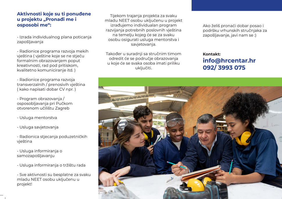 -Usluga informiranja o tržištu rada -Sve aktivnosti su besplatne za svaku mladu NEET osobu uključenu u projekt!