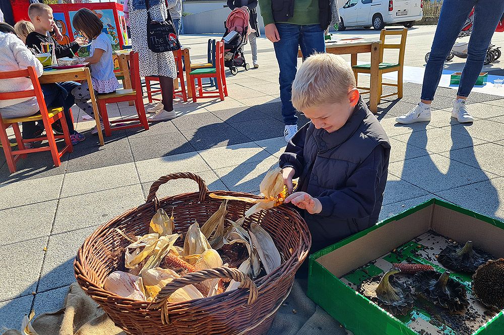 Šareno, veselo, zanimljivo bilo je na dijelu u kojem su najmlađi posjetitelji mogli crtati, igrati se kukuruzom, sjemenkama…Dječji vrtić Cvrčak tako svake godine da svoj obol ovoj manifestaciji, a tijekom cijele pedagoške godine promovira važnost ekologije i zaštite okoliša. Mališani su nakratko zamijenili suvremene igračke proizvodima iz prirode.