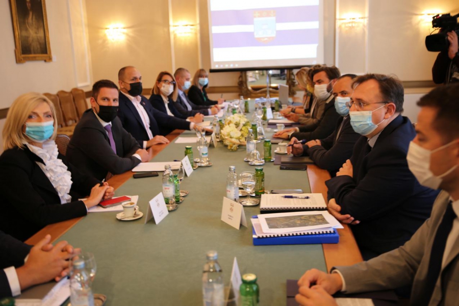 Župan Ivan Anušić i gradonačelnik Osijeka Ivan Radić sa suradnicima danas (8. listopada 2021. godine) u Osijeku su održali radni sastanak s ministrom gospodarstva i održivog razvoja dr. sc. Tomislavom Ćorićem, uz koga su bili glavna savjetnica ministra Anja Bagarić, tajnik Kabineta ministra Marin Vuković, ravnateljica Uprave za procjenu utjecaja na okoliš i održivo gospodarenje otpadom Anamarija Matak, ravnatelj Uprave za programe i projekte EU, europske i međunarodne poslove Marko Markić te predsjednik Uprave Agencije za ugljikovodike Marijan Krpan.