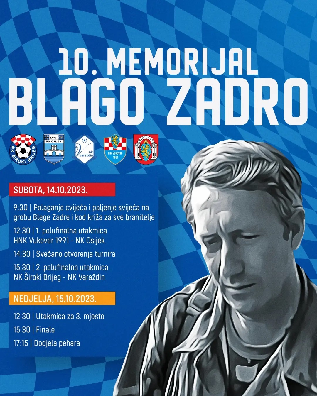 U subotu je od 9:30 sati na rasporedu polaganje cvijeća i paljenje svijeća na grobu Blage Zadre, te kod križa za sve branitelje. Zatim, u 12:30 sati 1. polufinalnu utakmicu igraju HNK Vukovar 1991 i NK Osijek.