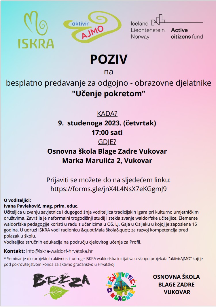 Sadržaj objave isključiva je odgovornost udruge ISKRA waldorfska inicijativa.