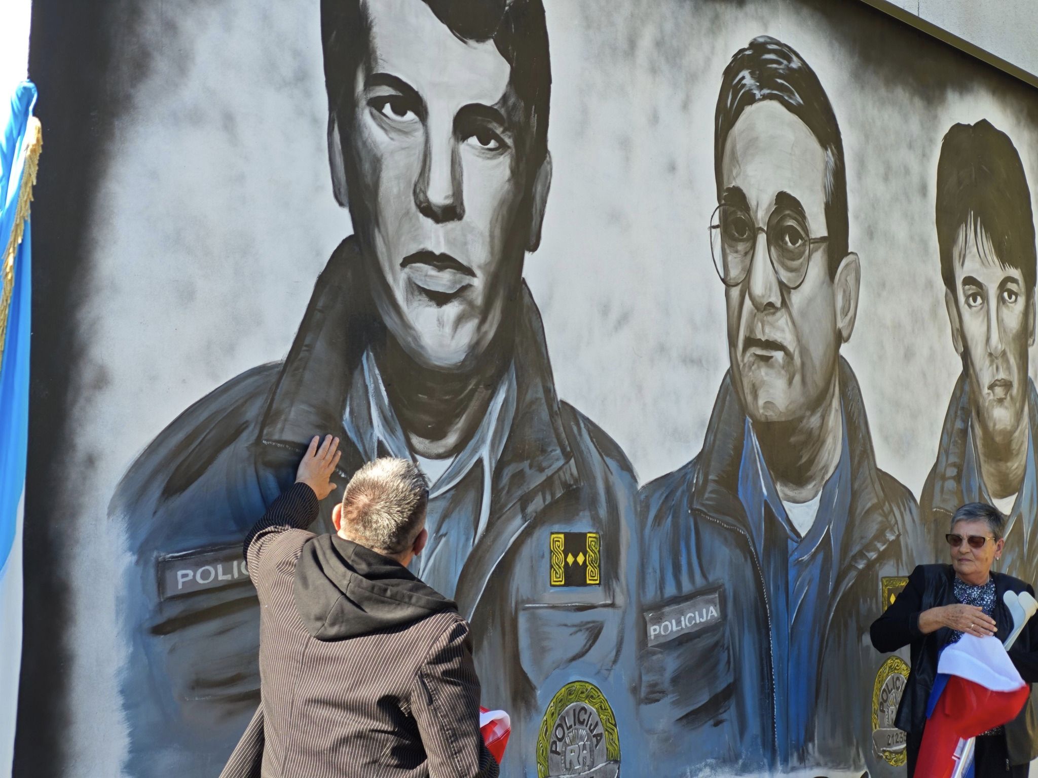 – ratnom načelniku Policijske uprave Vukovar Stipi Poletu i braći policajcima Zoranu i Ivici Boškoviću. Mural su otkrili Ljuba Pole, supruga Stipe Poleta, Ante Bošković, brat poginulih Zorana i Ivice Boškovića.